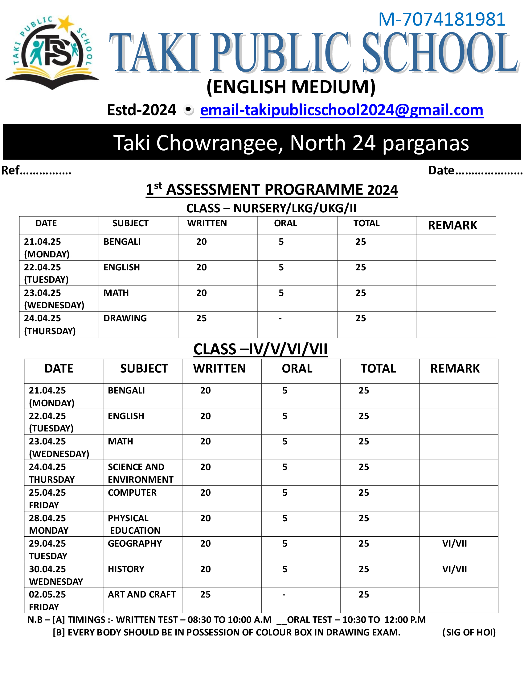 Email: takipublicschool2024@gmail.com